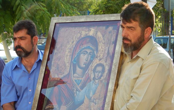 Τὴν Δευτέρα 4 Αὐγούστου, κατόπιν προσκλήσεως τοῦ Ἱ.Ν.Μεταμορφώσεως τοῦ Σωτῆρος Δήμου Μεταμορφώσεως καὶ στὰ πλαίσια τῶν ἑορταστικῶν ἐκδηλώσεων ΣΩΤΗΡΕΙΑ 2014, ὁ προϊστάμενος τοῦ Ναοῦ μας π.Χρυσοβαλάντης Θεοδώρου, συνοδευόμενος ἀπὸ 5 Ἐκκλησιαστικοὺς Ἐπιτρόπους, μετέφερε τὴν ἱερὰ εἰκόνα τῆς Παναγίας Ὀδηγητρίας (ἔτους 1733) καθὼς καὶ λείψανα τῶν Ἁγίων Στεφάνου, Ραφαήλ καὶ Ἰω.Χρυσοστόμου ποὺ φυλάσσονται στὸ Ναό μας πρὸς προσκύνηση στὸν ὡς ἄνω Ναό.